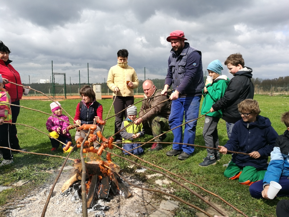 Odměnou po úklidu bylo společné pečení špekáčků, čerstvé koláče a malá tombola sponzorovaná firmami EKOKOM a EKO-UNIMED.